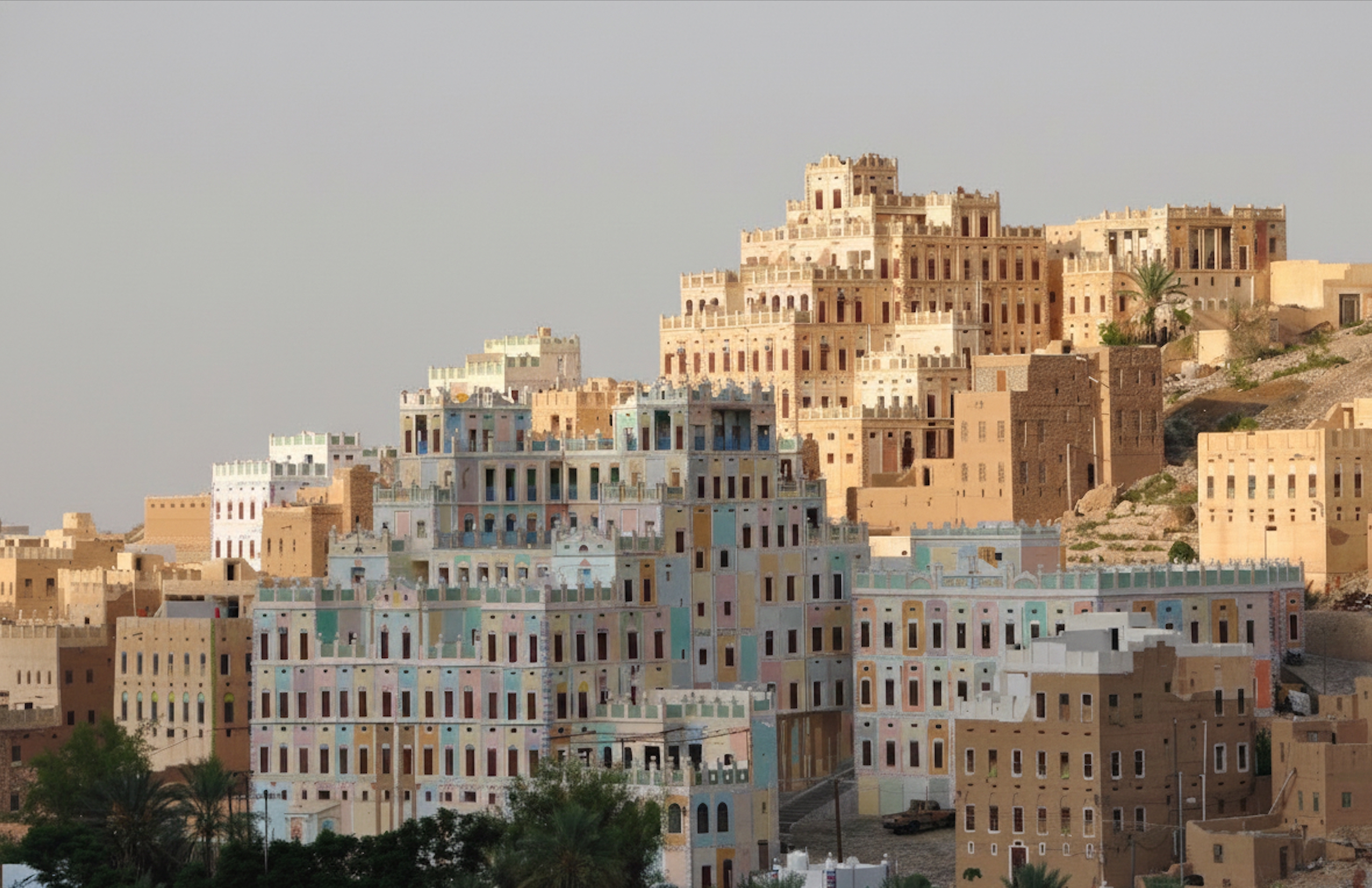 حقّقت العمارة التقليدية في حضرموت متانةً وراحةً وجمالًا لافتًا باستخدام أدوات بسيطة وتقنيات البناء بالطوب الطيني. صمّم البنّاؤون منازل تحافظ على برودتها في حرّ الصيف الذي تصل درجاته إلى 40 درجة مئوية، وأنشأوا مباني متعددة الطوابق—تصل إلى تسعة طوابق—كما هو الحال في مدينة شبام، المُدرجة على قائمة التراث العالمي لليونسكو. وإلى جانب وظيفتها العملية، تتميّز العمارة الحضرمية بزخارف ونقوش خاصة تعكس الهوية الثقافية للمنطقة. Hadramout’s traditional architecture achieved remarkable durability, comfort, and beauty using simple tools and mud-brick construction. Builders designed homes that stayed cool in summer heat reaching 40°C and created multi-story structures—up to nine floors—as seen in Shibam, a UNESCO World Heritage Site. Beyond function, Hadrami architecture features distinctive decorative motifs that reflect the region’s cultural identity.